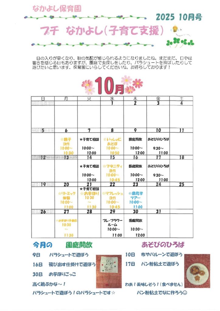 いつもなかよし保育園の子育て支援にご参加いただきありがとうございます。