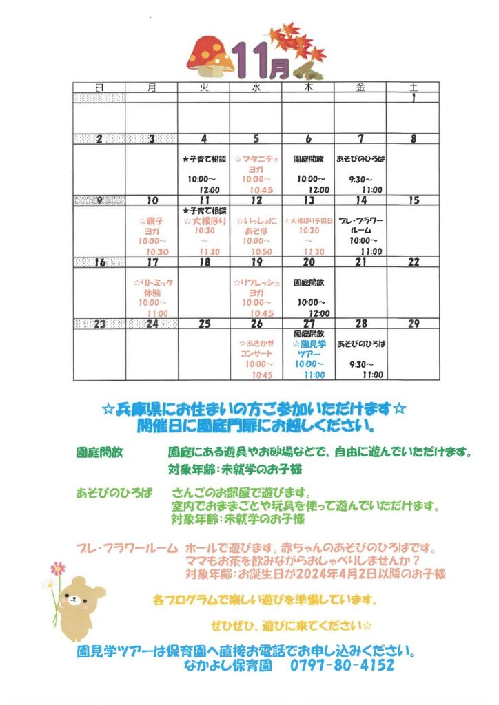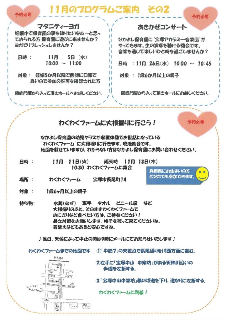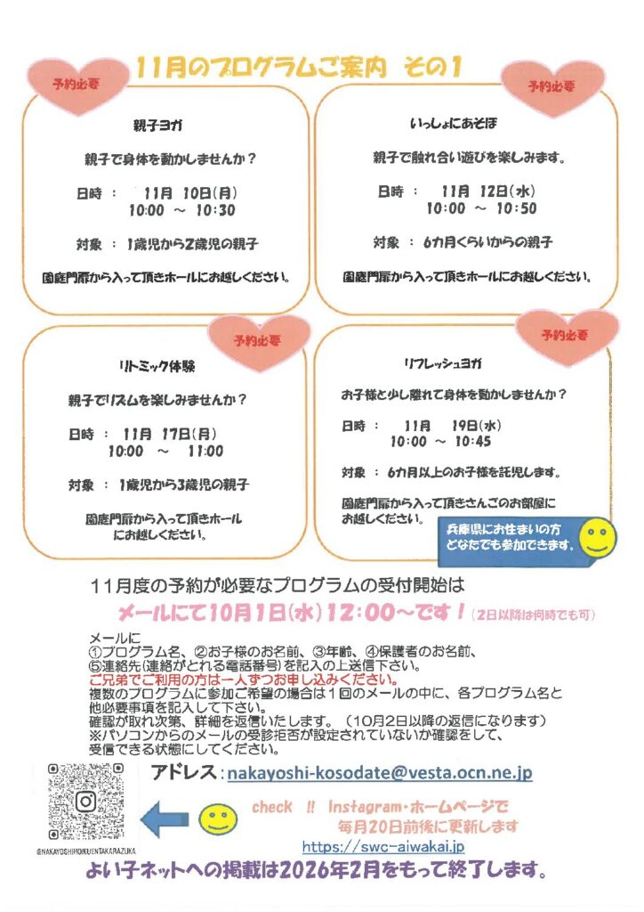 11月の申し込み必要なプログラムの予約開始は10月1日(水)12:00~です。