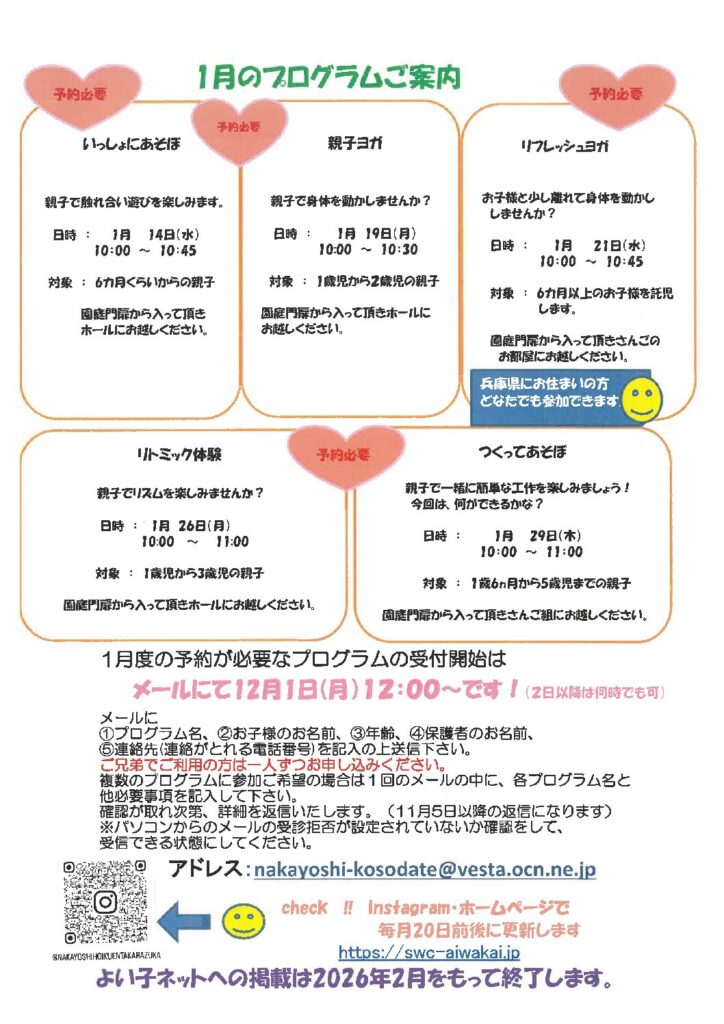 1月の申し込みが必要なプログラムの予約開始は12月1日(月)12:00~です。