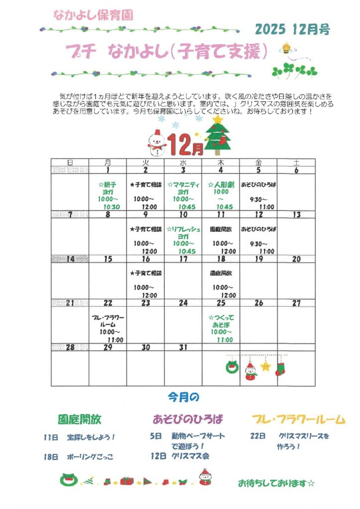 いつもなかよし保育園の子育て支援にご参加いただきありがとうございます。