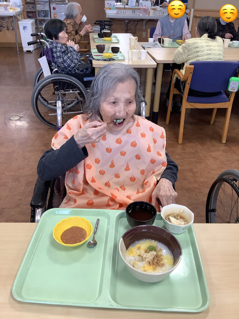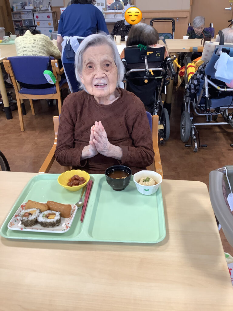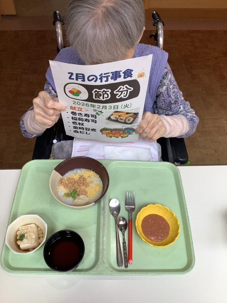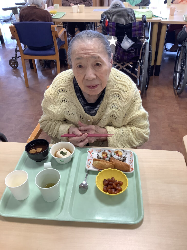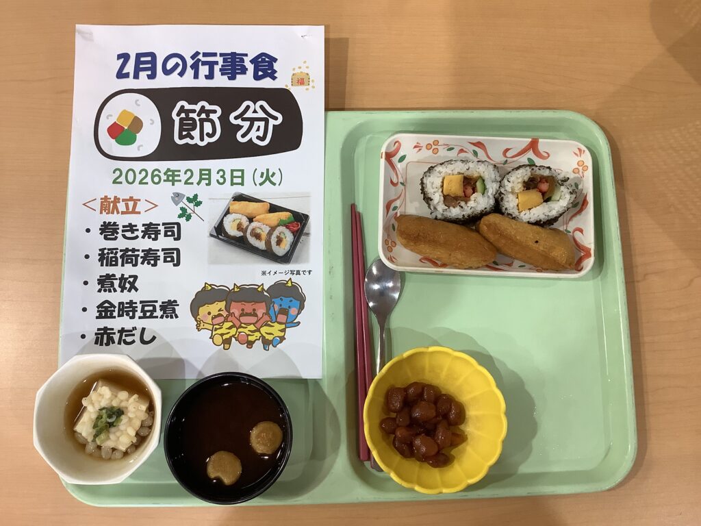 節分行事としては豆まきと並び、恵方巻も一般的で、恵方巻として巻き寿司や稲荷寿司が提供され、皆さん「今日節分なの?」などと、季節を感じていただけた様子でした♪ また、普段はあまり提供されない赤だしも「美味しい」と好評でした( ^ω^ )