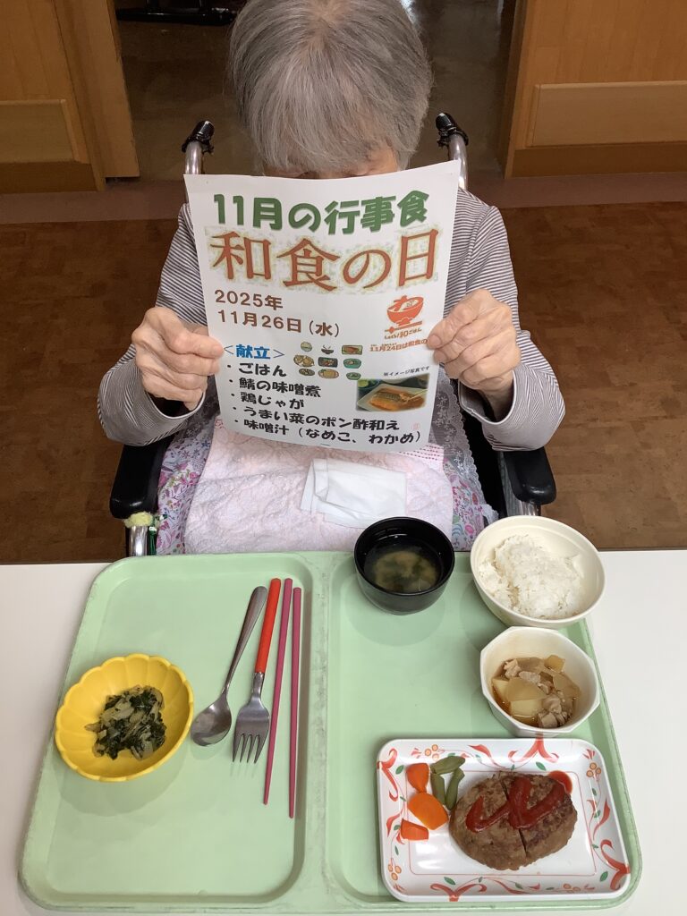 11月24日は「いい(11)に(2)ほんしょく(4)」の語呂にちなみ、日本の伝統的な食文化を大切にし、次の世代へ伝えていくために制定された、和食の日でした。だしのうま味を生かした料理や、旬の食材を使った献立を通して、日本ならではの味わいと食の大切さを感じていただく日となっています。