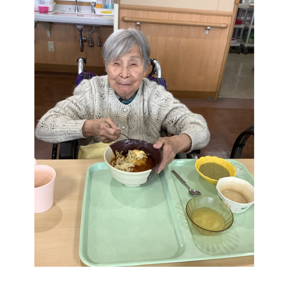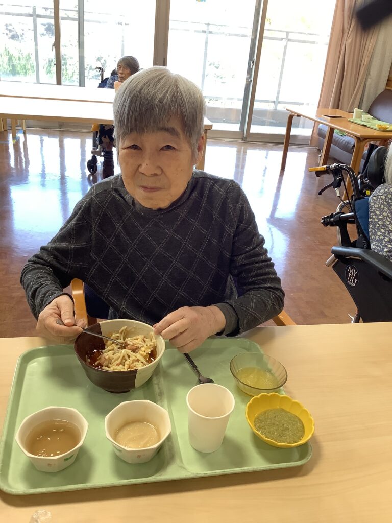 また、みそかんぷらの「かんぷら」とは馬鈴薯のことで、馬鈴薯は長期保存が可能であることから食糧が不足していた時代や農作物が不足する冬季に味噌や砂糖、みりんと和えて炒め、主食の代わりとして食べられていたそうです♪ 普段大阪では食べることの無いご当地のラーメンやみそかんぷらを召し上がりながら、「昔の人は色々と工夫していたんだよね」などと、職員との会話も弾み、楽しい食事となりました (^^)