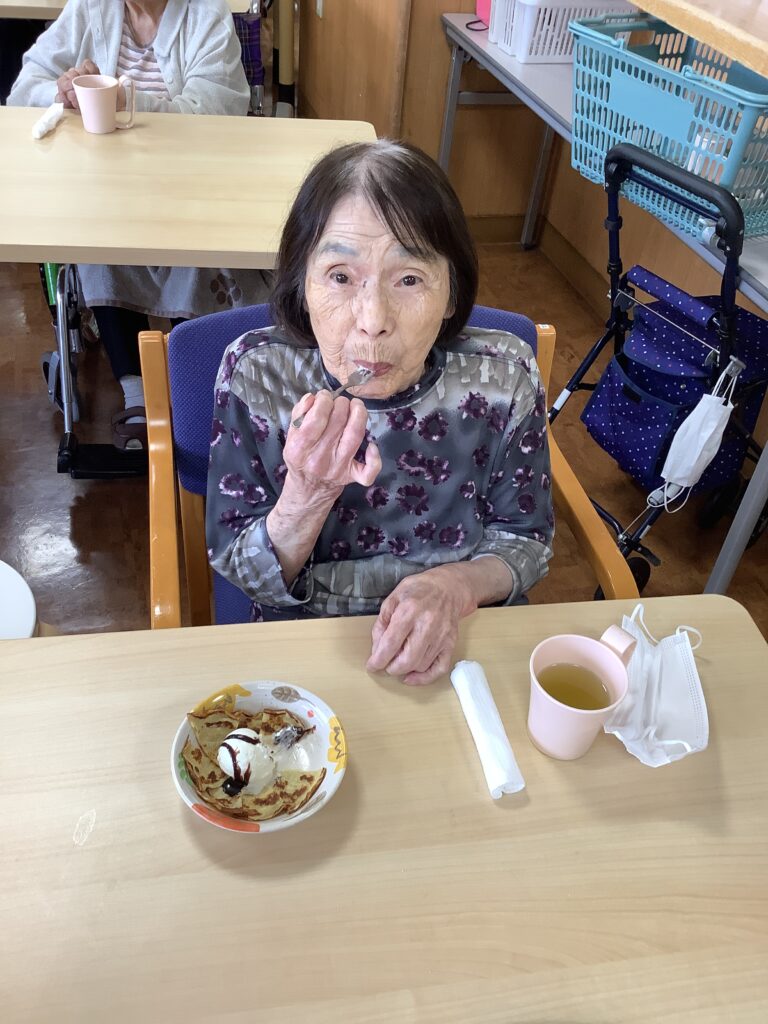 クレープが食べられない方にはアイスにチョコソースをかけ召し上がっていただき笑顔が見られました(*^^)♪