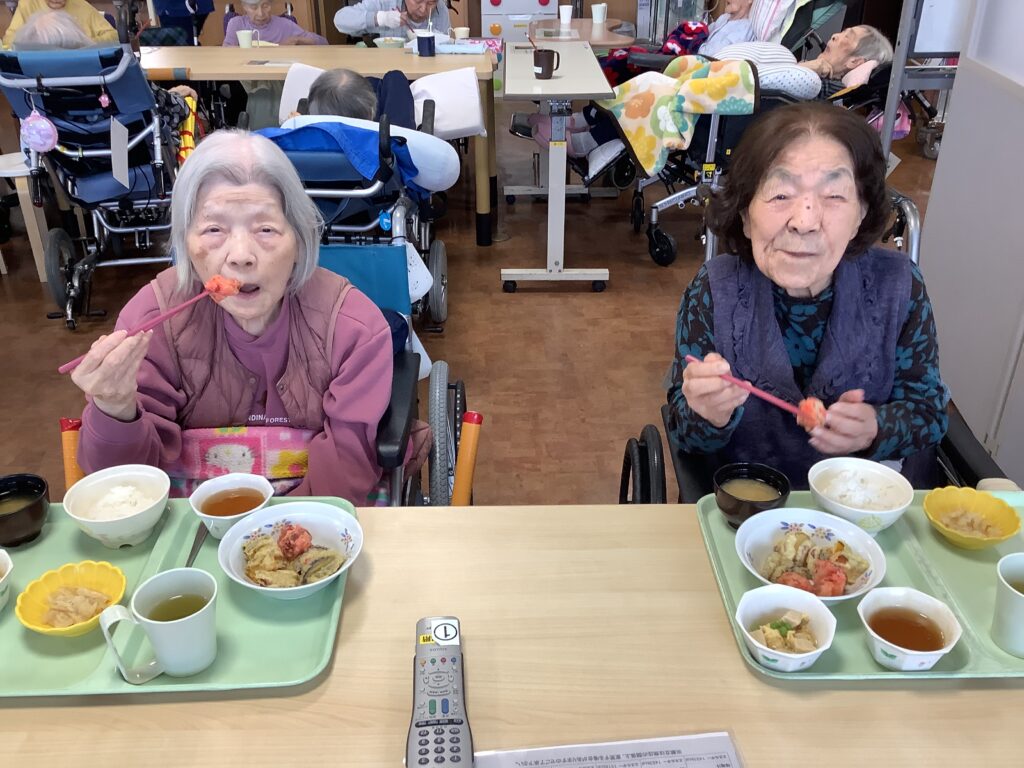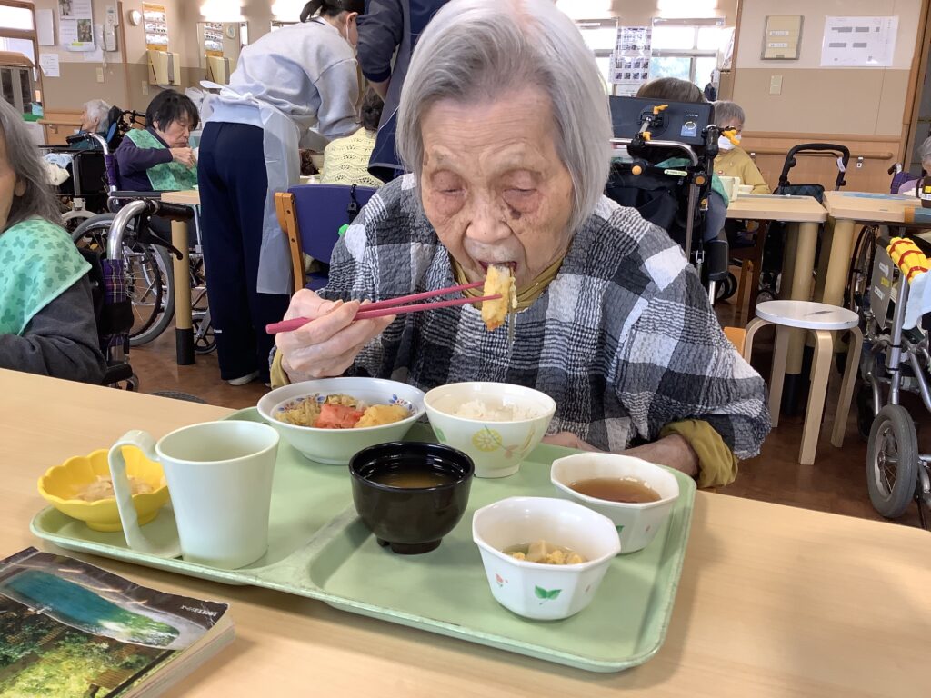 揚げたての天ぷら目の前で揚げ、揚がる音や香ばしい香りとともに、出来立てをお召し上がりいただきました!普段とはひと味違う特別な雰囲気の中で「今日はごちそうだね」「昔よくつくったよ」と会話や笑顔が広がり、いつもと違うひとときを過ごしていただきました。 中でも、ちくわの衣には紅しょうがを刻んだ関西特有の衣で提供させていただきました(^o^)!「珍しいね♪」「美味しい!」と、とても好評でした。